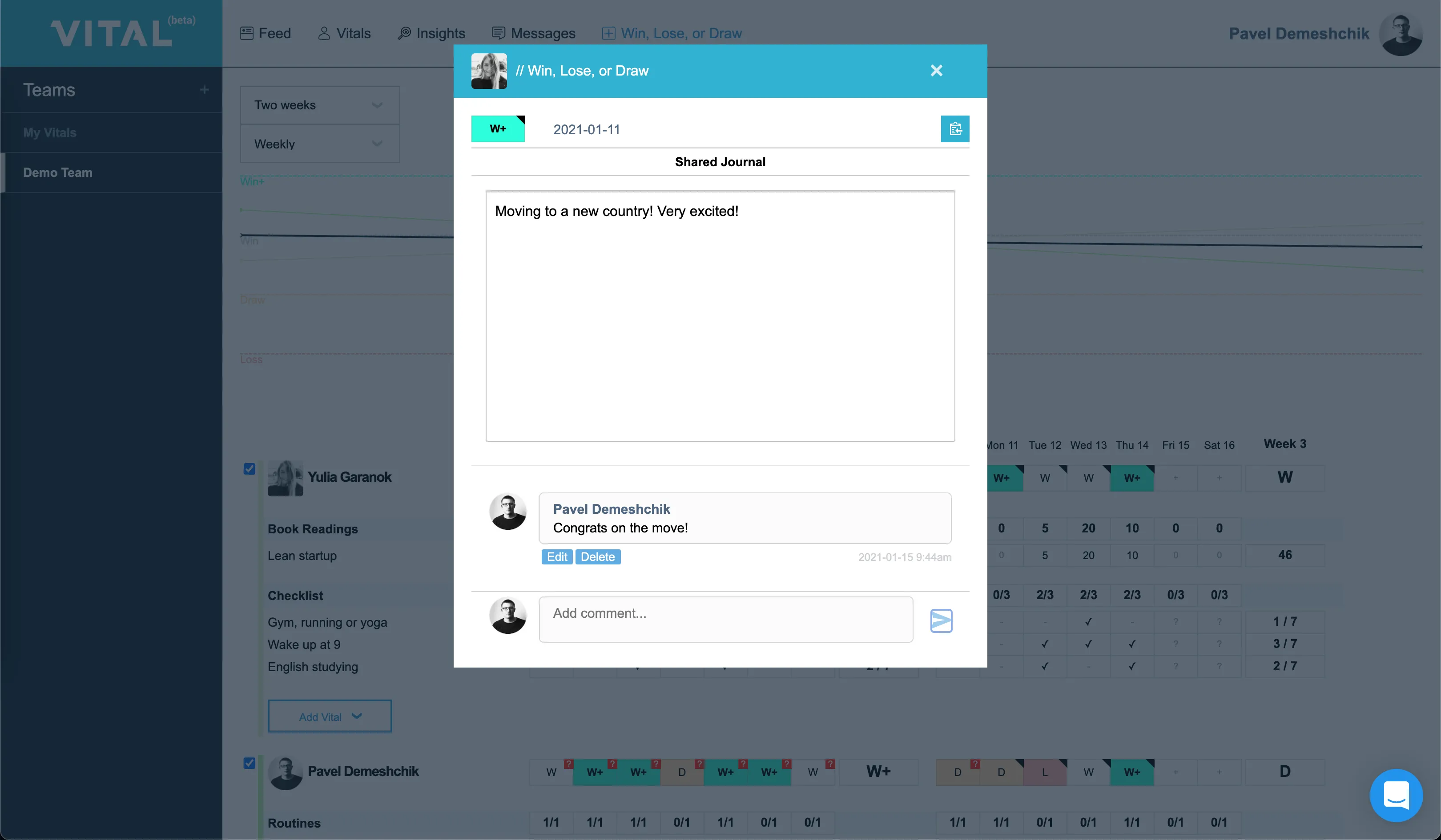 VITAL — a human analytics platform, currently in the MVP stage. With Vital, you can track your personal data such as book readings, time spending, daily vices, and rituals. The platform makes data tracking social with teams engaging and commenting. It also provides a simple visualization of your data and data analytics that helps people to understand their feelings and behaviors better.